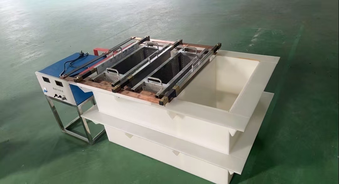 This equipment adopts a PP anti-corrosion tank, iron crane frame, and stainless-steel baskets, ensuring durability and chemical resistance. The compact design (2.5×1.1×0.9m) allows it to fit easily in small workshops while maintaining industrial-grade stripping efficiency.